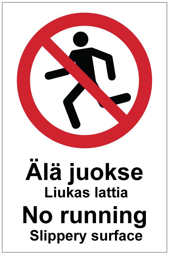 Älä juokse Liukas lattia No running Slippery surface