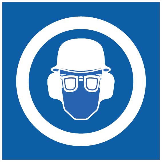 Pään, silmien ja kuulon suojaimet symboli