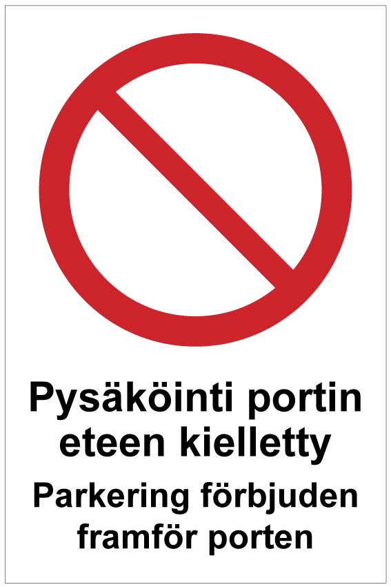 Pysäköinti portin eteen kielletty Parkering förbjuden framför porten