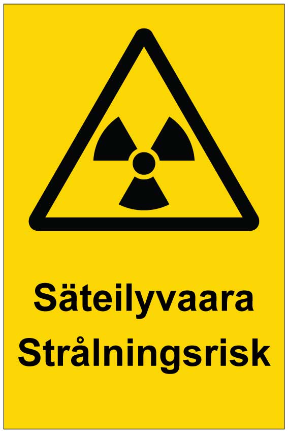 Varoituskyltti molemmilla kotimaisilla kielillä